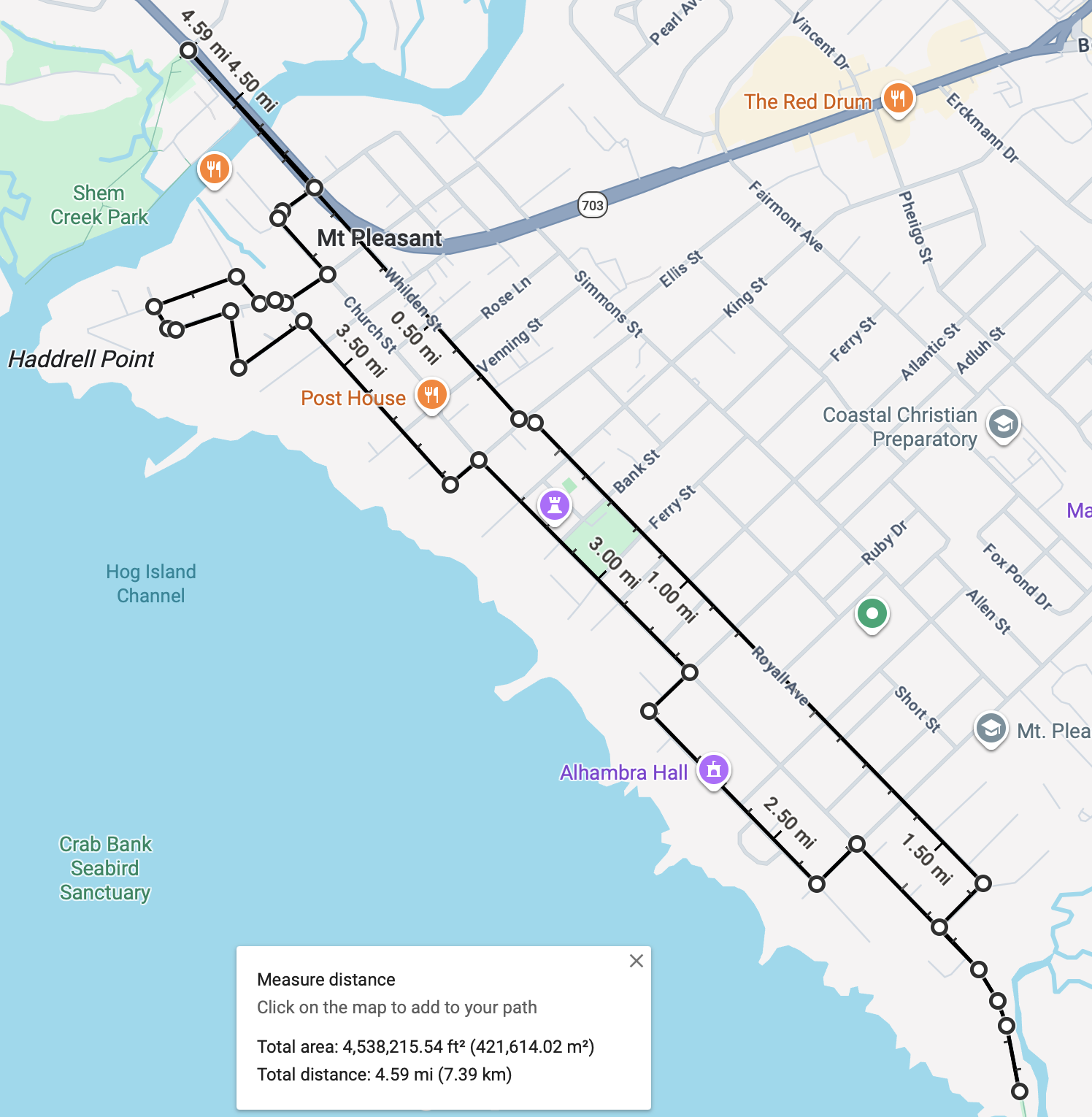 - The ride will begin and end at Muddy's Dockside Bar (1313 Shrimp Boat Ln, 29464). The route is ~4.6 miles and should take ~30 minutes to complete. Before committing, be aware of this distance and that we will ride on roads (not sidewalks or paths).