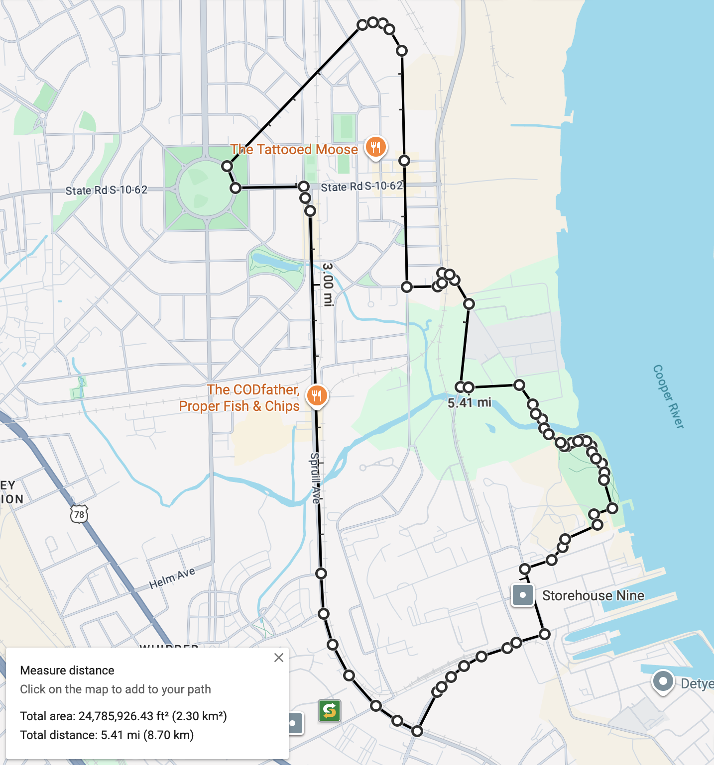 - The ride will begin and end at COAST Brewing Co. (1250 2nd St N, 29405). The route is ~5.4 miles and should take ~35 minutes to complete. Before committing, be aware of this distance and that we will ride on roads — many, but not all of which, have dedicated bicycle infrastructure.